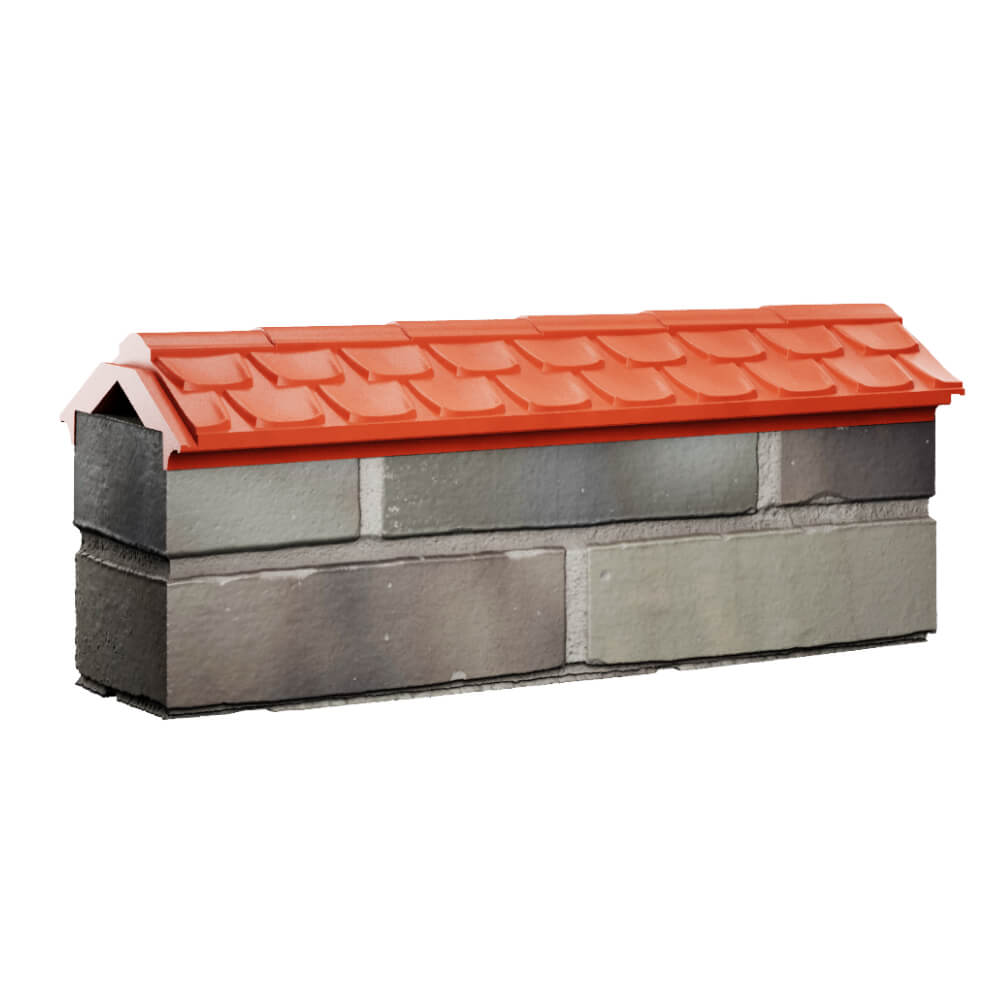 Парапет Elbrus Красный 175 х 510 х 65 мм с посадкой на 0.5 кирпича (130 мм) под натуральную черепицу может быть применен как в цокольной, так и в верхней части забора в виде конька.